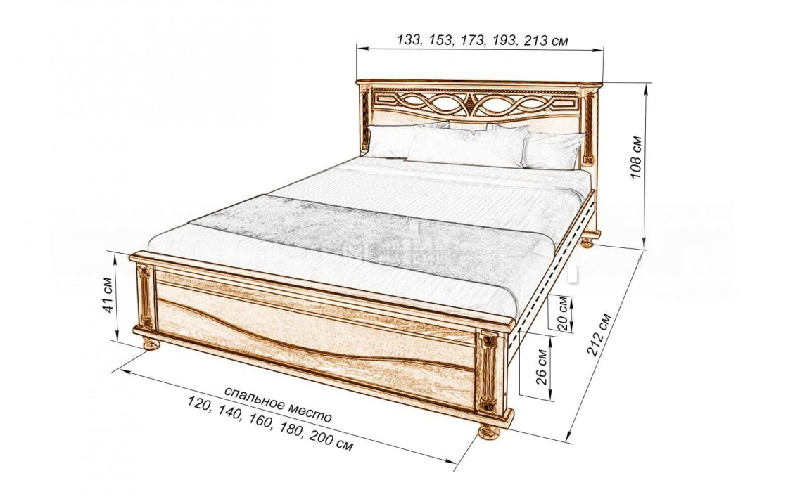 Оригинальная кровать Мелиса из берёзы отличается узорчатым изголовьем и низким изножьем. Модель, которую можно купить по выгодной цене в нашем интернет-магазине, оснащена аккуратными ножками для защиты напольного покрытия, а также обработана специальным лаком для увеличения срока службы изделия. Осуществляется доставка на дом по Грозному и Чеченской Республике.| Размер | Цена | |